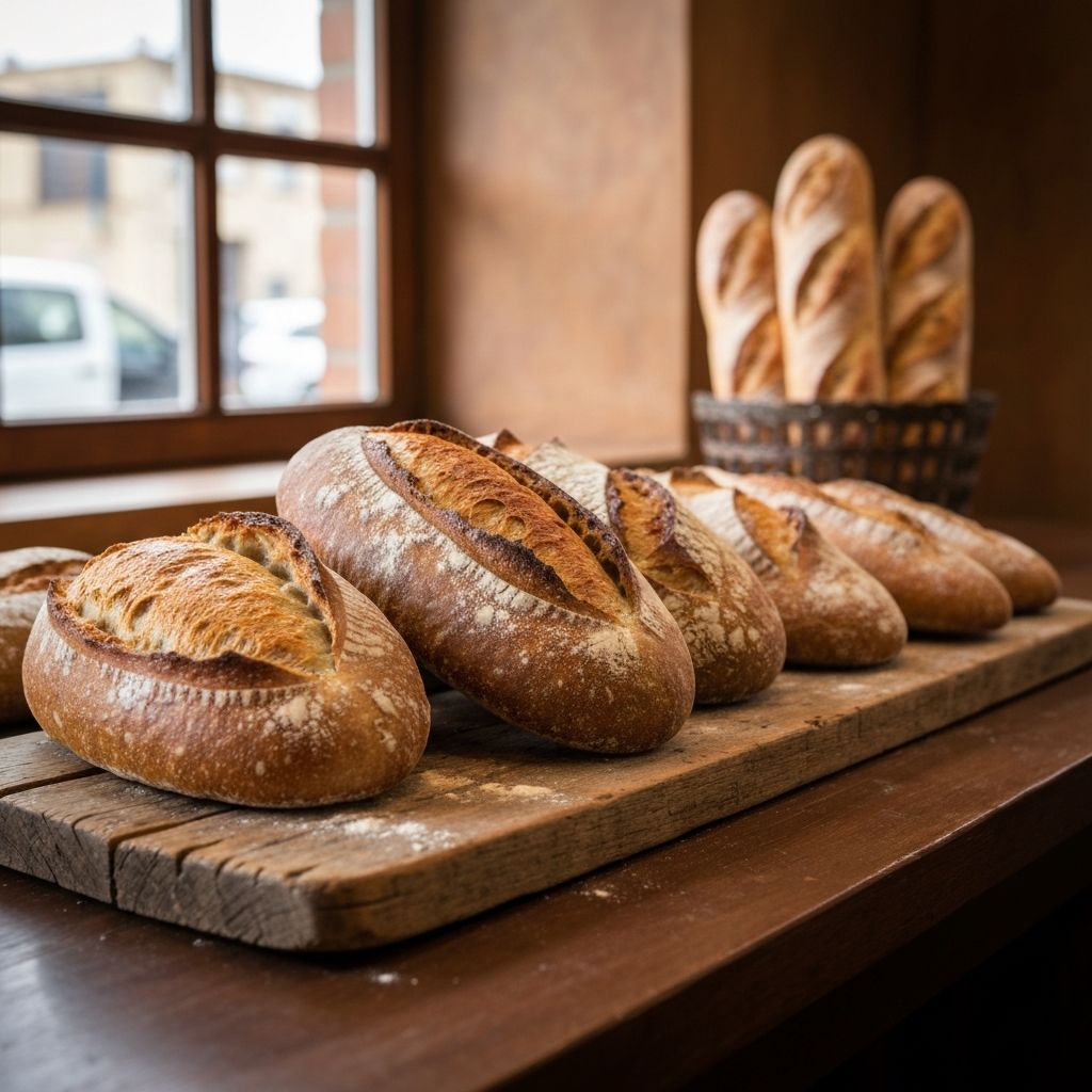 Crusty sourdough, fluffy baguettes, and wholesome whole wheat loaves baked fresh every morning.